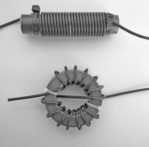 proudový balun 1:1. U symetrických antén, které mají v místě napájení