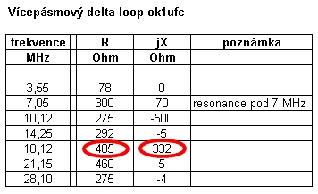 Nejhorší VSWR měl můj deltaloop na pásmu 17m a hodnoty jsem v tabulce