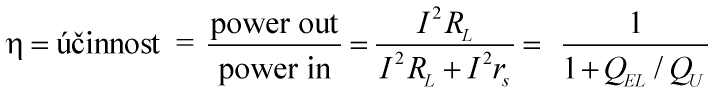= 1. Při stejné jakosti induktoru Q = 100 by nám vyšla účinnost