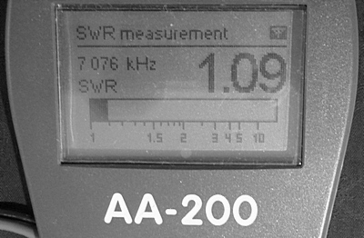 Mezi anténou s tyčí dlouhou 300 mm a 200 mm jsem nezjistil žádného rozdílu. Krátká anténa (100 mm) však měla horší vlastnosti při příjmu (signály v místnosti byly o 1 S slabší) a při zkoušce vysílání vysokým výkonem se mnohem rychleji ohřívala. Z toho usuzuji na mnohem horší účinnost.