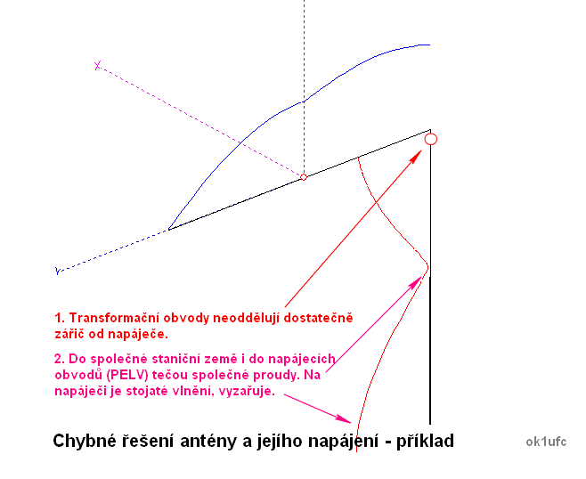 místě maximální magnitudy napětí zářiče anténu reaktancí. Pokud se při
