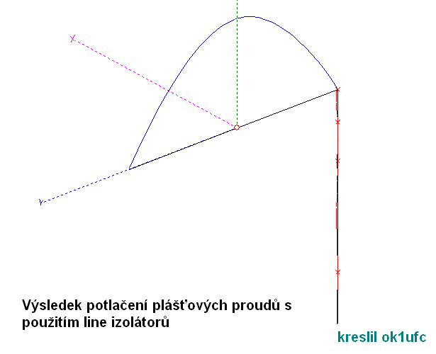 půlvlnná anténa, která má pomocí line izolátorů účinně potlačeny