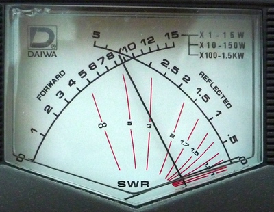 Ještě finální měření VSWR analyzátorem a Wattmetrem/VSWR metrem při P = 800 Wattů na 3580 kHz: