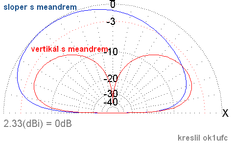 Směrovost antény však lze velmi snadno kompenzovat protiváhou ve tvaru meandru: