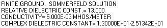 Zde pravděpodobně mnoho čtenářů zklamu. Zapomeňte na MININEC. Zvolil jsem si sice vizuálně jednoduchou anténu, bohužel, pro dost dlouhé vlny a na realizaci protiváhy jsem si nechal trochu místa v prostoru od cca 30 cm do 2 metrů nad zemí. Prvním algoritmem, který je k dispozici zadarmo, je aplikace této metody, uvádím včetně hodnoty komplexní dielektrické konstanty: