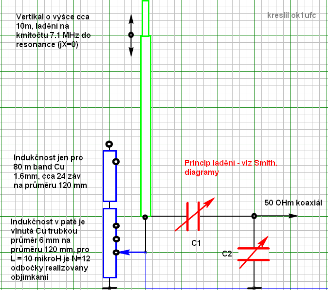 zopakoval schéma obvodů, kterým je laděn vertikál o výšce h = 10m v patě.