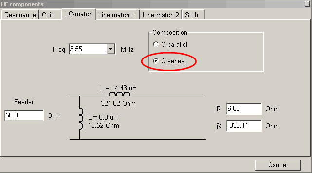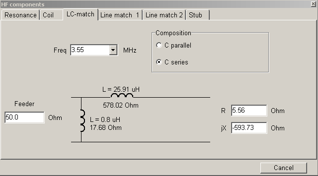 indukčnosti a kapacity jsou: L= 11.3 mikroH a C=45 pF. Transformační