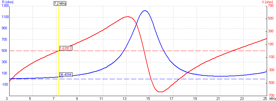 Na 7.2 MHz je Z=36 + 2 Ohmů a v ostatních pásmech vypočteme nebo naměříme