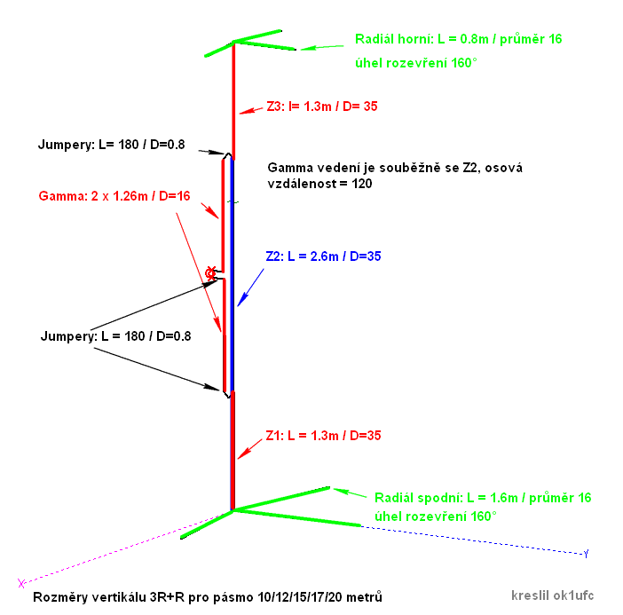 Konstrukce jednoduchého pětipásmového (10/12/15ú17/20) vertikálu
