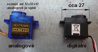 U balkónové antény (tu jsem měl jako první) jsem točil knoflíkem na kondenzátoru, než mě to přestalo bavit. Byl jsem rozhodnut udělat reléový dálkově ovládaný přepínač, což je samozřejmě lehce realizovatelné. Padnul jsem však v obchodech i na Internetu  na zajímavá a laciná modelářská serva. Taková serva lze napájet a ovládat pouze třemi tenkými vodiči. Spolehlivě točí i s velkými kondenzátory od Slávka OK1TN. Pro řízení serv lze používat algoritmy, které se snadno realizují na jakémkoliv jednočipovém mikropočítači (včetně oblíbených PICAXE). Až budu mít chvilku, udělám si interfejs s mikropočítačem k PC. Aby mě to nezdržovalo, při experimentech jsem s kondenzátory točil pomocí testeru na modelářská serva. Na fotografii jsou serva, která jsem vyzkoušel a kterým nevadilo blízké elektromagnetické pole antény. V servech se opravdu nevyznám, zkoušel jsem jak analogové, tak digitální servo přibližně stejných rozměrů: