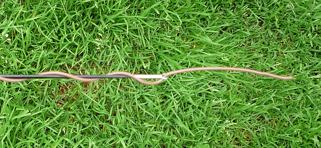 Konec tenkého vodiče se prostrčí jednoduše kroužkem na špici, opravdu to k zajištění stačí: