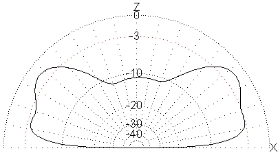 ale zpravidla mnohem hůř. 3. Vliv země Vliv země má vliv nejenom na vertikály - je o tom např. tento článek. Rozdíl u vertikálů se zakopanými radiály dělá však jen maximálně 2.8 dB. Vliv zemnicího systému, má, bohužel vliv i na směrovky. Zem pod mým stožárem je protkaná asi 30 radiály a ještě je u paty rozměrný ocelový (obezděný septik). Vlastnosti země pod patou stožáru směrovky jsem odhadl na rozdíl asi 1.5 dB v zisku na nízkých úhlech. Psal jsem o tom např. zde. Bohužel, neumím odhadnout vliv takové země na snížení vyzařovacího úhlu. 4. Zkrácení prvků V žádném případě nejsem propagátorem nezkrácených antén, přestože právě tato monstra jsou cílem mnoha operátorů i prodejců antén. Na následujících obrázcích ukazuji vyzařování zkráceného (na 60% délky) a nezkráceného dipólu (polovina vlny) ve správné výšce: