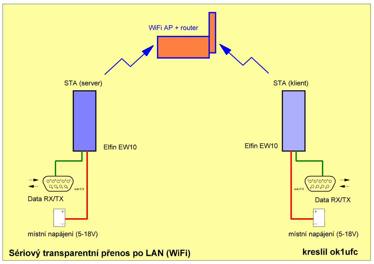 LAN a s využitím WiFi je jednoduchý. Jsou třeba dva moduly Elfin EW10 a