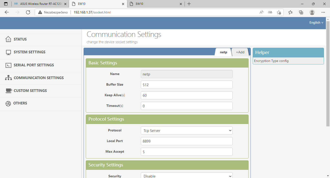 jiném článku) a dále je třeba nastavit jeden Elfin EW10 jako server,