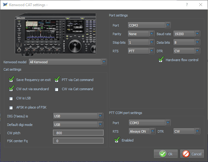 TS-2000, ale dobře fungovalo nějaké obecné nastavení pro Kenwoody - viz vlevo dole