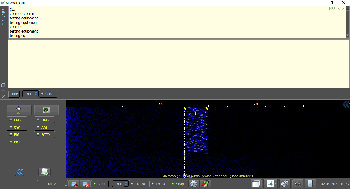 standardního RTTY také RTTYM, Olivia, Contestia a oblíbený MFSK. V