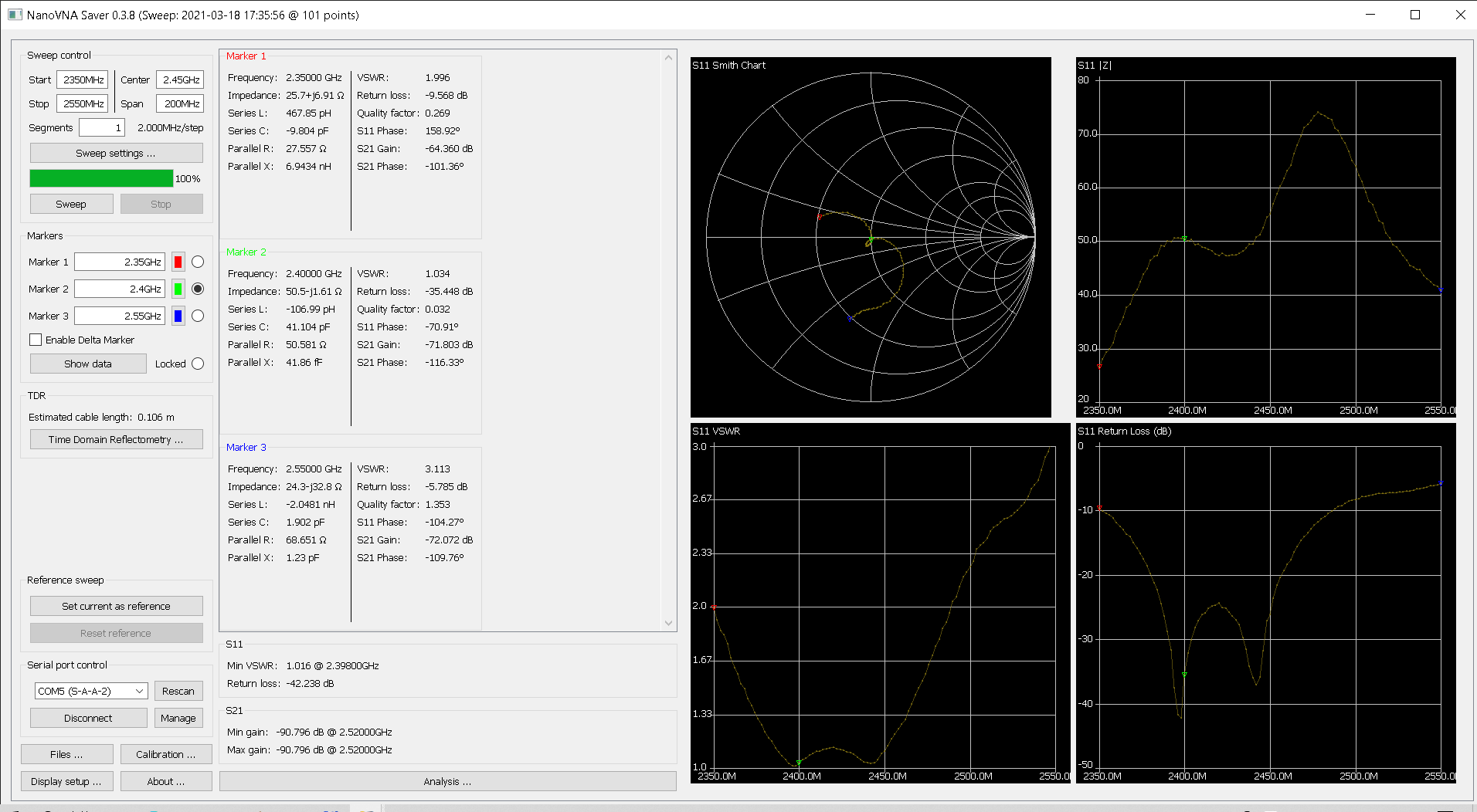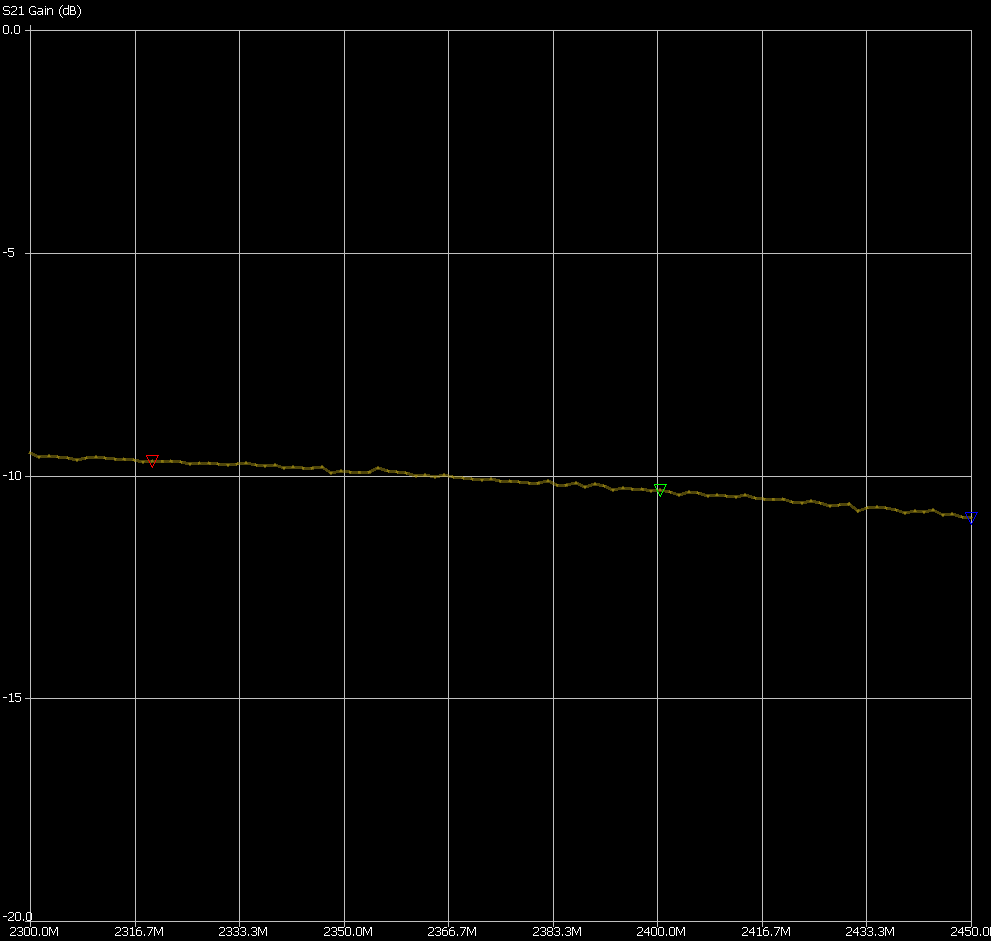 Zisk na kmitočtu 2400 MHz byl něco přes 9 dB.
