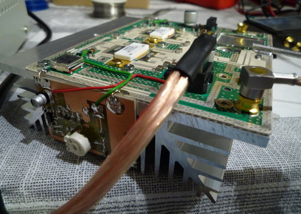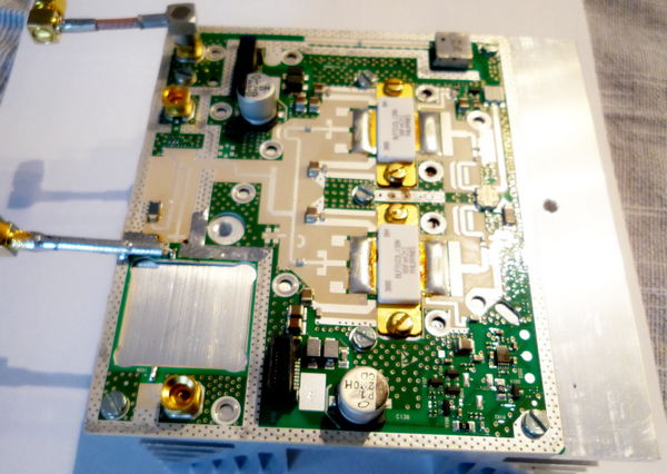 Úvod Koncový stupeň PA Nokia jsem levně sehnal na ebay.com s cílem použít ho jako jeden z testovaných PA pro provoz na satelitu QO-100. Modifikace byla podrobně popsaná například v článku Jima G7NTG. Protože jsem pro SSB provoz ani s malou anténou (průměr 40 cm) nepotřeboval vysoký výkon (stačí mi 10 - 20 Wattů), instaloval jsem desku na poměrně maličký chaldič (nedoporučuji). Úpravy |