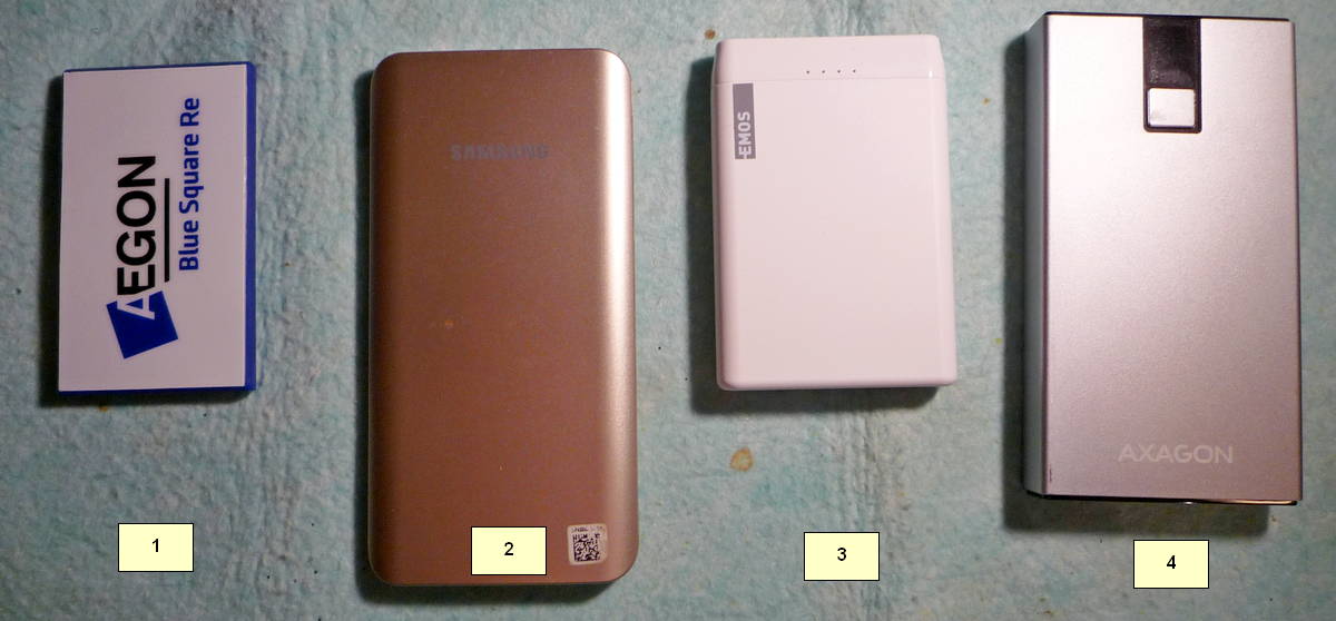 Popisy jednotlivých powerbank Banka č. 1 je laciný reklamní výrobek nějaké pojišťovny, který splňuje obě hlavní kritéria. Jde o malou, šikovnou powerbanku, kterou používám často a rád. Bohužel, nevím, kde koupit výrobek podobných vlastností. Banka č. 2 je solidní výrobek firmy Samsung. Splňuje obě hlavní kritéria. Jde o banku s větší baterií (a kapacitou). Bohužel, mám ji několik let a na pultech globalizovaných dealerů ji nevidím. Banka č. 3 je český výrobek od firmy EMOS. Jde o levnou, solidní banku. Splňuje kritérium č. 1. Bohužel, banka není schopna udržet napájení přístroje s nízkou spotřebou. U takového přístroje se mimo passthrough režimu odpojí. To mě mrzí. Provedl jsem zkoušky, s kterými přístroji banka spolupracuje a realizoval jsem dotaz na technickou podporu EMOS. Firma EMOS je velice vstřícná, odpověděli obratem. Všechny jejich power banky jsou konstruované na minimální odběr 50 mA. Banka č. 4 mě zklamala. Jedná se o výrobek AXAGON. Passthrough režim neumí. To znamená, že po připojení nabíjecího adaptéru odpojí spotřebiče. Spotřebiče s malým příkonem rovněž neumí napájet. Po krátké době (několik sekund) zhasne displej a přístroje jsou odpojené. Pro amatérské účely mi není naprosto k ničemu. Takže ji používám jen občas k napájení mobilního routeru WiFi od Asus (ten má napájení 5 V).