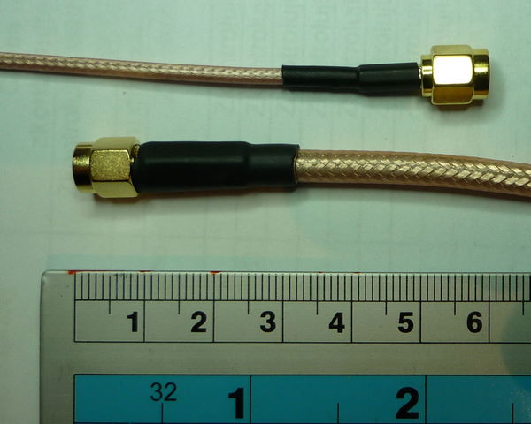 pouze kabel pomocí tenké kovové trubičky bez konektoru. Používám SMA konektory s kabely do průměru 5 mm, střední vodič pájený, vnější stínění krimpované.