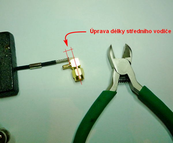 odstranění dielektrika lze střední vodič zavést do SMA konektoru,