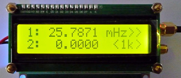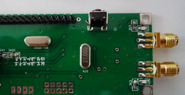 Demontáž krystalu je možná po demontáži displeje - viz fotografie vpravo. Po odšroubování distančních nožiček lze sejmout displej z řadového konektoru. Použitý krystal pro řízení frekvenční syntézy Syntéza je řízena krystalem o kmitočtu 27.000 MHz. To je nepříjemný rozdíl proti generátoru pro pásmo 40 MHz až 4400 MHz, kde je použit TCXO s kmitočtem 25 MHz. Rozdíl je nepříjemný v tom, že pro kmitočtové řízení dvou různých generátorů nestačí jeden výstup z GPS DO.