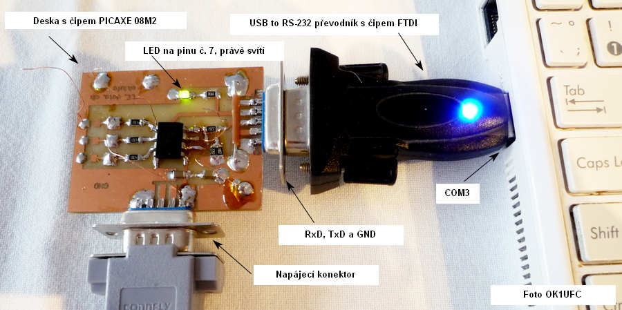 rozhraní přes FTDI konvertor, protože jsem už v šuplíku neměl ani jeden