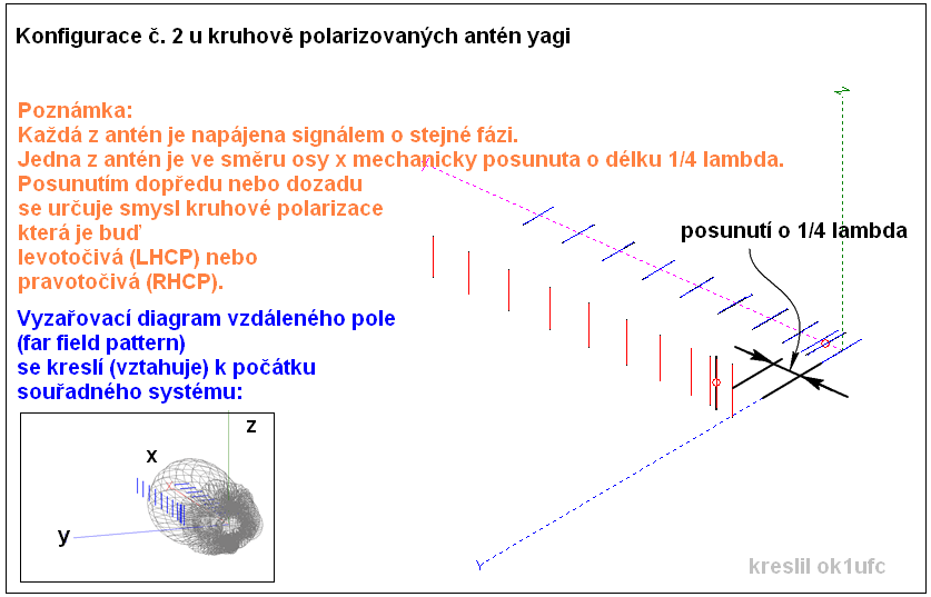 jednu z antén posunout ve směru osy x přesně o 1/4 vlnové délky. Opět