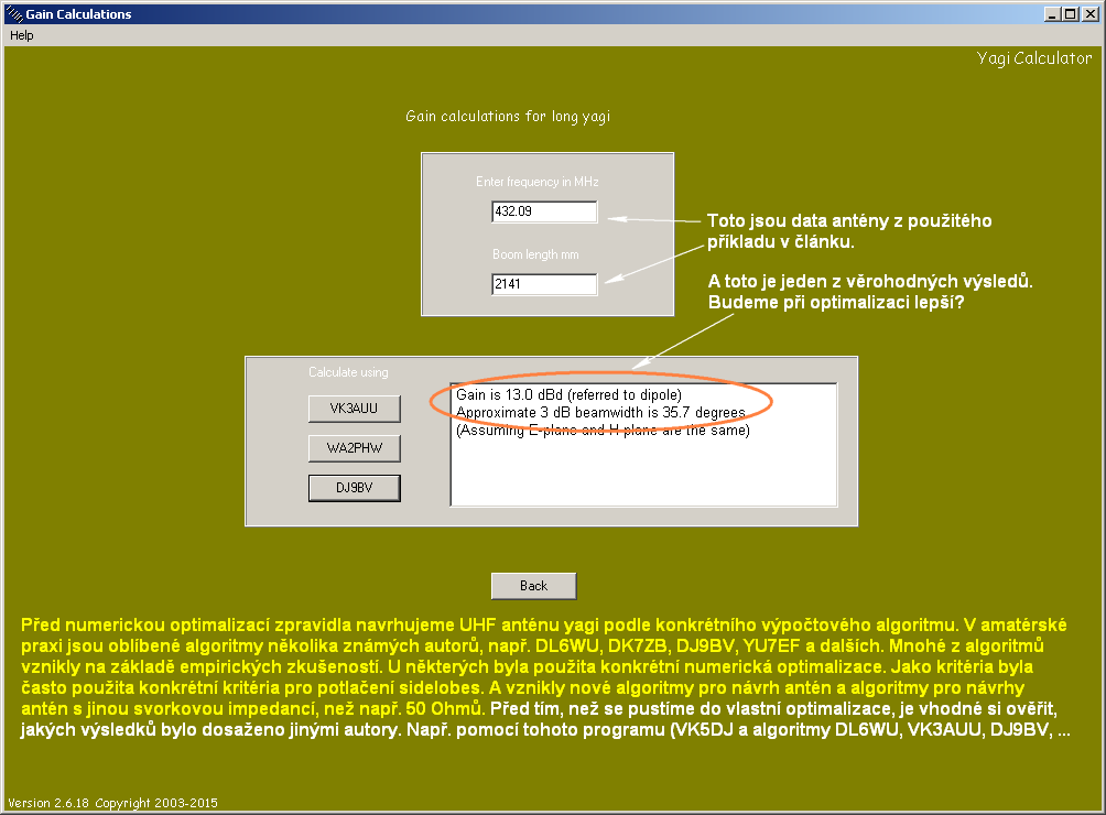 Úvod V dnešní době má průměrný amatér k dispozici několik továrně vyráběných UHFyagi antén, několik popsaných a osvědčených metod pro jejich návrh, několik metod pro provádění různých korekcí (např. nejstarší známá korekce vlivu ráhna - boom corrections) a několik metod pro provádění různých optimalizací (od empirických po počítačové návrhy). V úvodní části této série článků rád odkazuji na vynikající práci DG7YBN (Hartmut Klüver, Kassel, Germany). Důležité milníky (milestones) od zveřejnění prvního článku profesorů Yagi a Uda s názvem "Projector of the Sharpest Beam of Electric Waves", přes optimalizaci délek prvků a spacingu bez uplatnění počítačových rekurzivních numerických metod (1978, autor DL6WU), přes optimalizace DJ9BV, VE7BQH, konstrukce G0KSC, až po DG7YBN GTV series s tzv. bent dipólem) jsou uvedené na http://dg7ybn.de/Milestones_in_Yagi_Design.htm. Velice rád uvedu také odkaz na home page DG7YBN: http://dg7ybn.de/index.htm. Naleznete tam celou řadu zajímavých úvah. Vynikající práci v oboru yagi antén odvedl také YU7EF (https://www.yu7ef.com/), na jeho stránkách najdete především celou řadu optimalizovaných jednoduchých antén, které byly mnoha amatéry vyzkoušené v praxi. Na místě je tedy otázka, proč se na svých stránkách zabývám designem a optimalizací UHF antén pro pásmo 70 cm? Mám několik osobních důvodů: