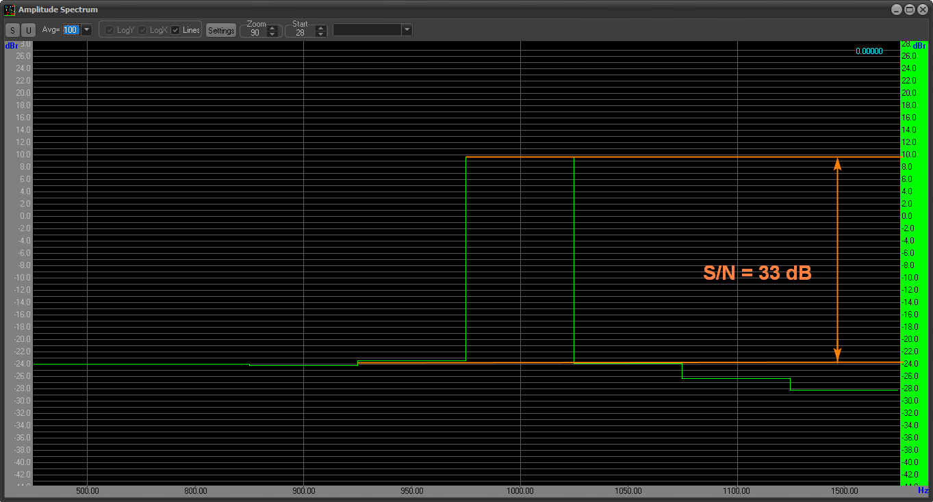 vyšším odstupem S/N, než při předchozím měření šumových čísel. I