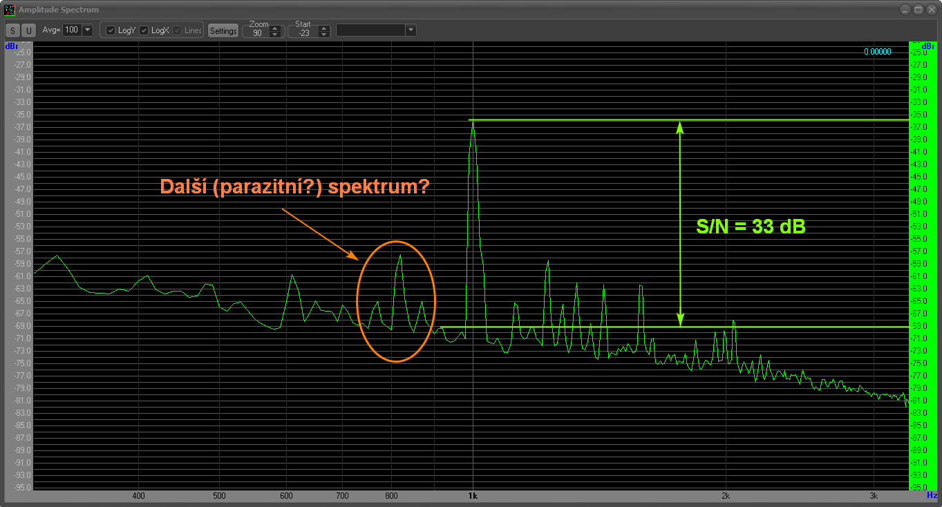 textem. Odstup S/N je asi 60 dB, pravděpodobně vlivem