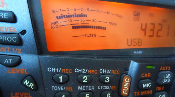 432.120 MHz, TCVR Kenwood TS-2000) pomocí sloupcového grafu. Na