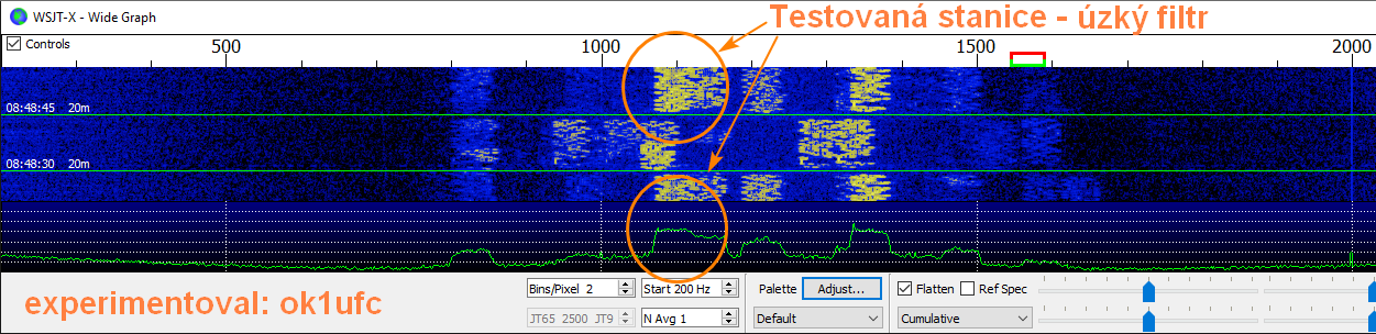 příjmu slabých signálů. Zobrazení spektra - obrázek pod