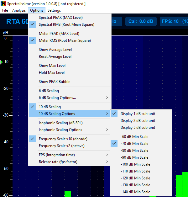 měřit RMS, používat škálu dělenou po 10 dB, zobrazovat dělení