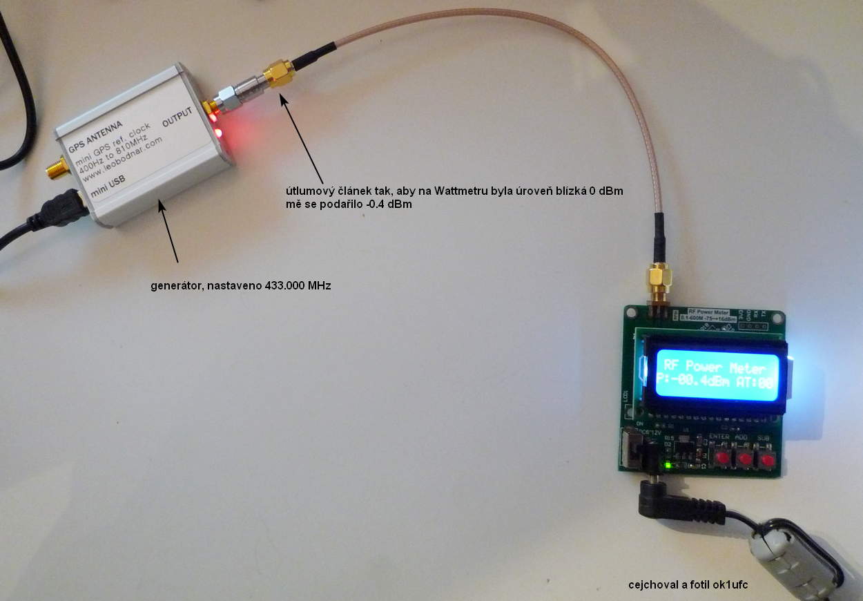 mém případě ukázal wattmetr -0.1 dBm. Lze použít i generátor s